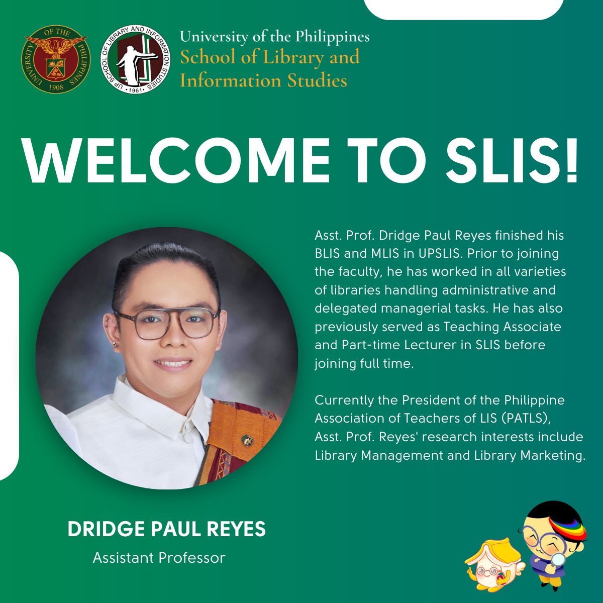We are delighted to welcome Assistant Professor Dridge Paul Reyes as a full-time member of the UP SLIS Faculty!