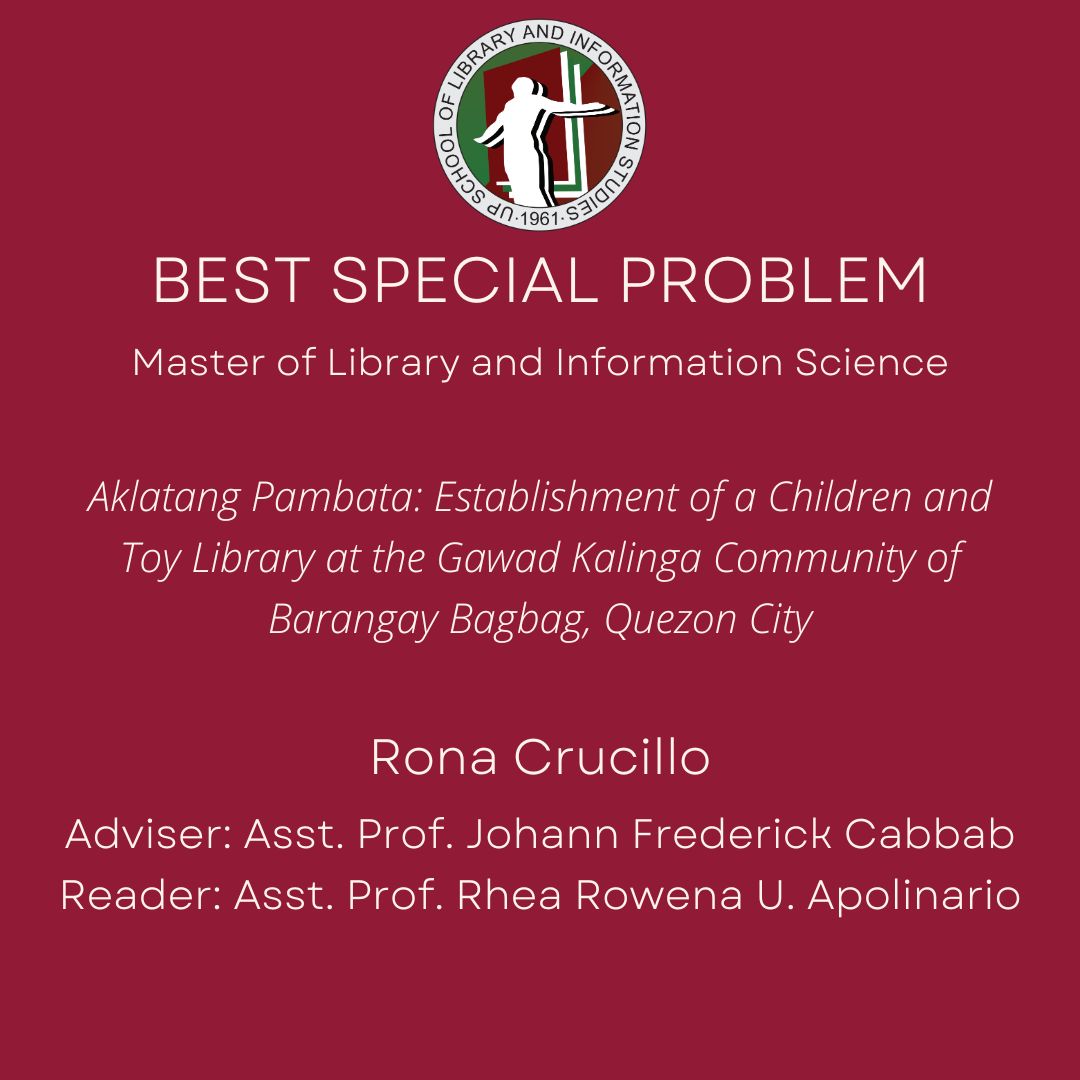 Congratulations to the awardees! They embody UP SLIS' continuing commitment to advancing education, research, and service for the public good.