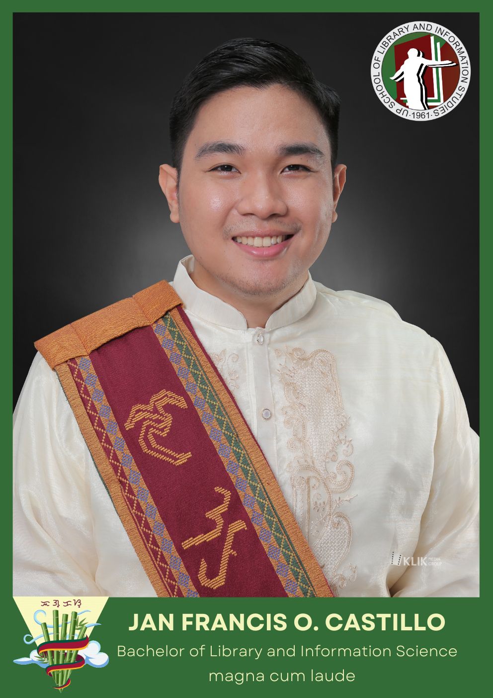 Ang mga nagsipagtapos ay binubuo ng dalawampu’t apat na mag-aaral mula sa Batsilyer sa Agham ng Aklatan at Impormasyon, kabilang ang tatlo na may karangalang summa cum laude, walo na magna cum laude, at isa na cum laude. Kabilang rin dito ang walong mag-aaral mula sa Masterado ng Agham ng Aklatan at Impormasyon at ang unang tatlo na magsisipagtapos sa Masterado ng Artsibo at Pamamahala ng Talaan.
